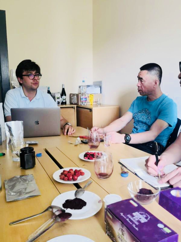 2018年8月6日,开云足球(集团)官方网站董事长姜雯戈、董事长夫人、常务副董姜晶晶、设备经理刘纯明、江南大学周志磊老师一行来到波兰、德国调研考察不老莓种植基地,不老莓相关产品及不老莓花青素提取设备。